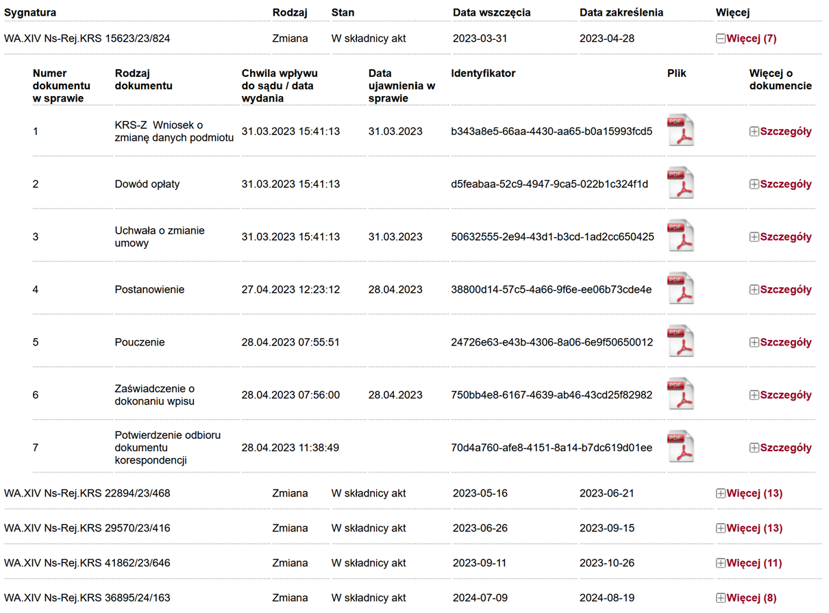 Od lipca 2021 roku możliwe jest przeglądanie akt rejestrowych i wgląd do dokumentów dla dowolnej spółki zgromadzonych w KRS (takich jak np. umowa spółki) za pośrednictwem Internetu.